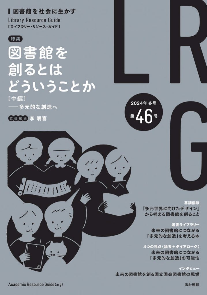 LRG 46号 装画・挿絵 2024-02-222024-06-26 work book ライブラリー・リソース・ガイド LRG 46号 (アカデミック・リソース・ガイド株式会社)の表紙と誌面イラストを担当させていただきました。