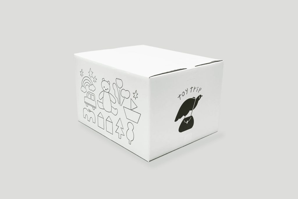『toytrip』ロゴ・配送ボックスイラスト 2024-08-06 work package product お子さまの月齢に合わせた良質なおもちゃ5~6品と遊びのヒントになる絵本2冊を2ヶ月に一度ご自宅にお届けする月額制のおもちゃレンタルサービス『toytrip』さんのロゴとお届け用のボックスのイラストを担当させていただきました https://toytrip.co.jp/lp