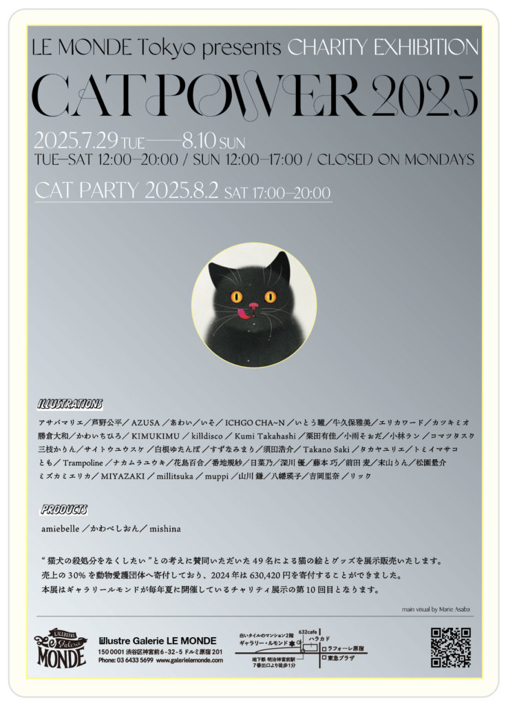 原宿のギャラリールモンドさん主催のチャリティー展 #CATPOWER2025 に参加させていただきます。